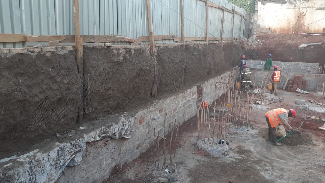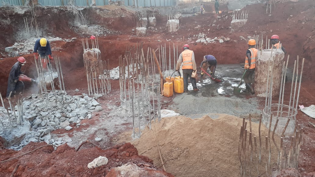 After the cured piles are exposed and hacked back to level, IOTA performs blinding and builds the formwork.
